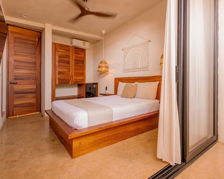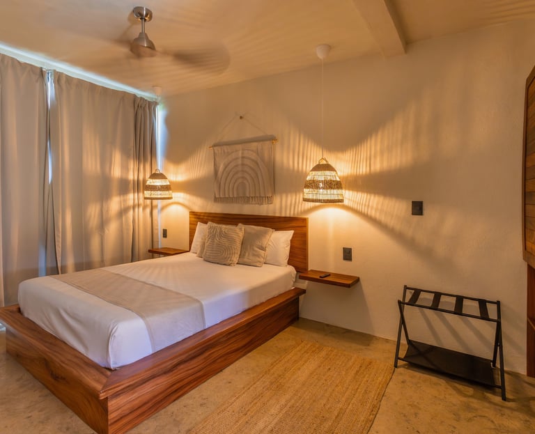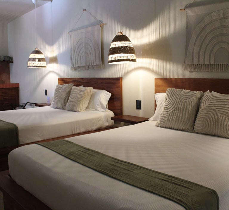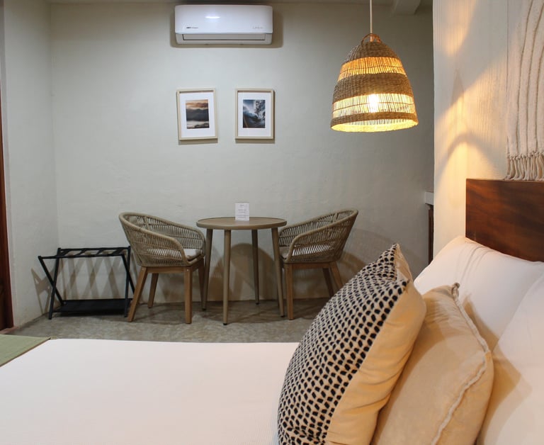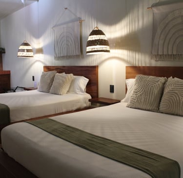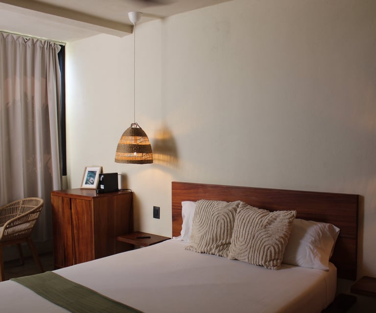 Diseñadas para dos personas, nuestras habitaciones estándar con cama Queen ofrecen el refugio ideal para quienes buscan confort, privacidad y buen gusto.